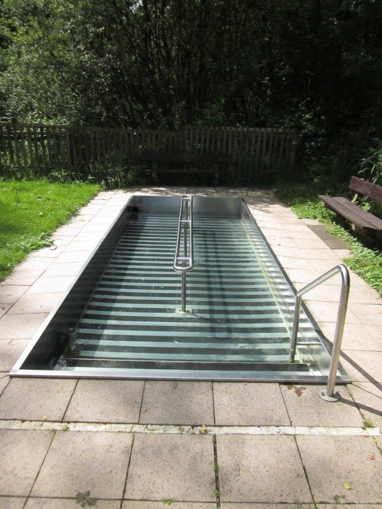 Das Kneipptretbecken liegt im Steimeler Ortsteil Weroth am Waldrand direkt neben der Grillhütte > Von Steimel imn Richtung Woldert fahren Sie durch den Steimeler Ortsteil Weroth. An der oberen Bushaltestelle an der Hauptstraße führt ein Wirtschaftsweg zur Grillhütte. Kneipp-Wassertretanlage in Steimel Weroth. Das Kneipptretbecken bietet den Wanderern die Möglichkeit, für eine erholsame Pause.